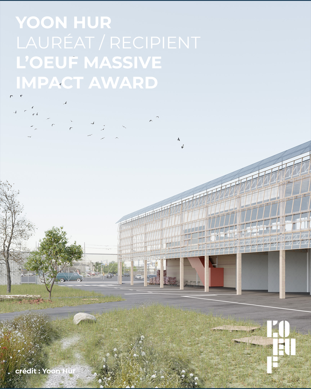 Nous avons le grand plaisir d’annoncer le récipiendaire du Massive Impact Graduate Award de L’OEUF, pour le projet de la promotion 2025 de l’Université de Waterloo ayant le plus grand potentiel de CHANGER LE MONDE : YOON HUR, pour son projet MATERIAL WORKS: Optimizing Material Circularity through Reversing Architecture.